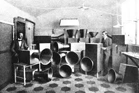 Luigi Russolo was the first noise composer and an artist in the musical branch of the Italian Futurist movement in the 1910s. He, together with his brother, created the noise instruments heard and seen in this video called intonarumori that mimics the sound of a industrial machine. More